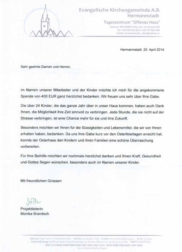 Hier erhalten Sie Einblick in die Dankesschreiben, die wir nach unseren Hilfstransporten von Einrichtungen oder Privatpersonen erhalten.